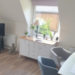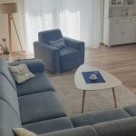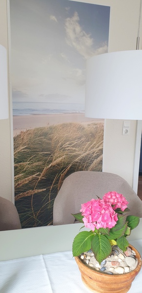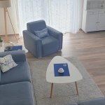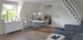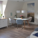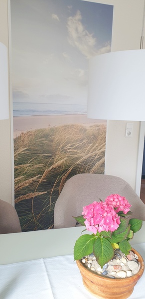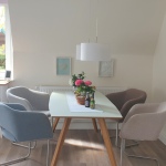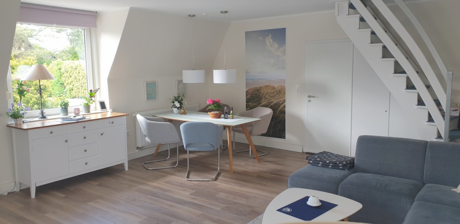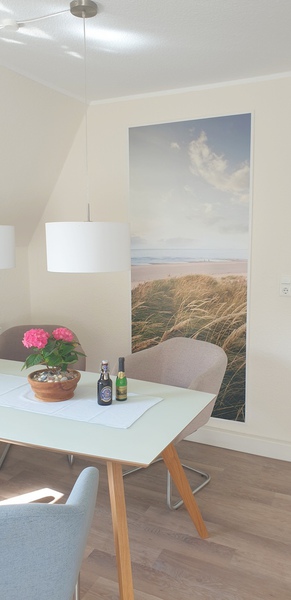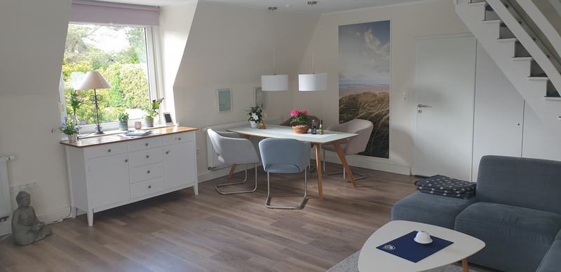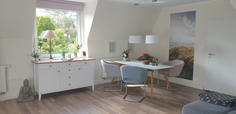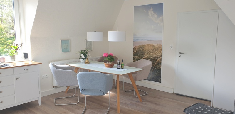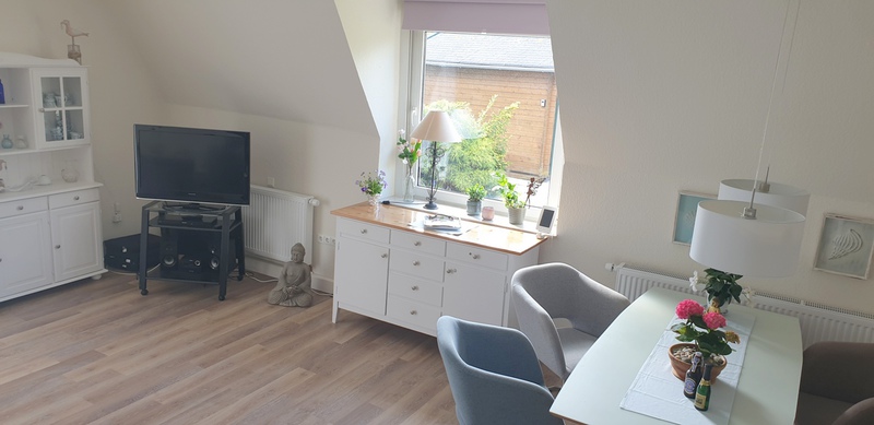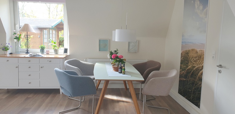 Das Wohn- und Esszimmer ist großzügig geschnitten und lädt zum Verweilen auch an regnerischen Tagen ein. Fernseher, Blue Ray-Player und eine kleine HiFi-Anlage stehen Ihnen zur Verfügung. Wer auch im Urlaub den direkten Zugang zum Internet nicht vermissen möchte, kann das bereitgestellte WLAN nutzen.