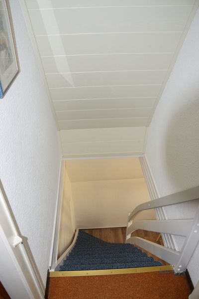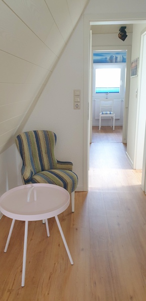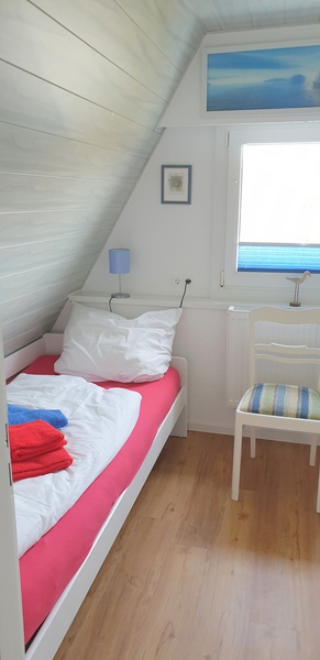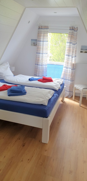 Im Obergeschoß finden Sie das große Schlafzimmer mit Doppelbett sowie das kleinere Schlafzimmer mit zwei Einzelbetten. Ein kleines WC rundet die Räumlichkeiten im Obergeschoß ab. Zur Verwahrung Ihrer Wertsachen können Sie auf einen Safe zurückgreifen. Bei Anreise sind die Betten bereits frisch bezogen.